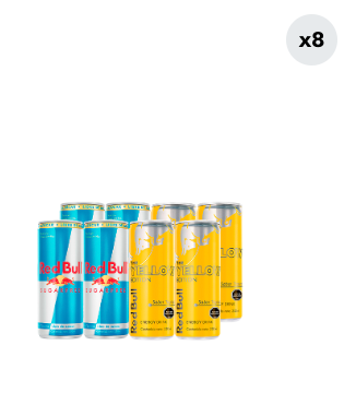 8x Bebida Energética Red Bull Sin Azúcar + Tropical 250cc