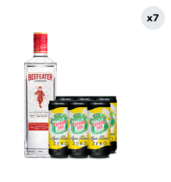 Pack Gin Beefeater London Dry 40° 750cc + 6x Agua Tónica Canada Dry Zero Lata 310cc